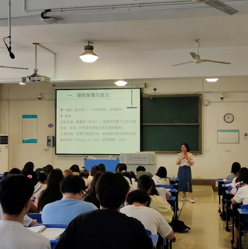 2024年5月29日上午,122cc太阳成集团李玲玲博士在锦绣校区逸夫楼A307举行了一场题为“拟除虫菊酯类农药的土壤生态风险”的行知讲座,2021级生物技术和生物制药专业员工聆听了讲座。